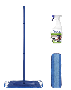 Das Bona Stein-, Fliesen- und Laminat-Reinigungsset ist ein Starter-Set für eine streifenfreie Reinigung von Stein-, Fliesen- und Laminatböden. Flecken, Schmutz und Verunreinigungen lassen sich damit gründlich entfernen. Einfach auf den Boden aufsprühen und wischen.